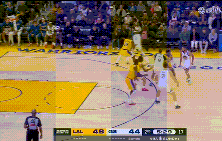 霍福德瞅准时机,妙传弯道漂移切入的库里,一个电线杆过弯拉杆反篮打成2+1